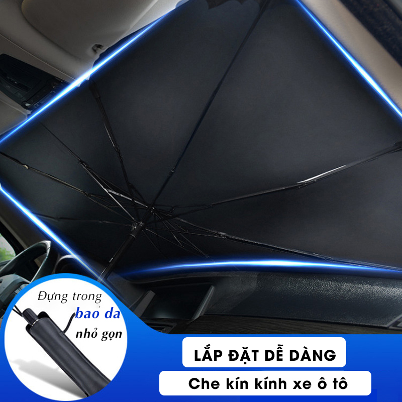 Chất liệu chống nắng BẠC titan + vải va đập PHẢN XẠ ÁNH NẮNG cực mạnh, ngăn chặn 98% tia UV hiệu quả. GIẢM NHIỆT 20 - 30 độ C, CHỐNG BẠC MÀU, hỏng hóc, bảo vệ nội thất trong xe, HẠN CHẾ BỐC MÙI, giúp không khí trong xe dễ chịu hơn. CẦM TAY, gấp gọn tiện lợi, BẤM NÚT tự động bung cúp dù trong 10s, dễ dàng sử dụng, cất giữ trong xe, mang đi mọi nơi. Thân dù cấu tạo từ thép đen điện siêu bền, chống lõm ô, không lật, không cong gãy. Thông minh, chất liệu vải dù chống thấm nước THAY THẾ DÙ khi trời mưa. TẶNG KÈM túi đựng bằng da cao cấp Thông Tin Chi Tiết