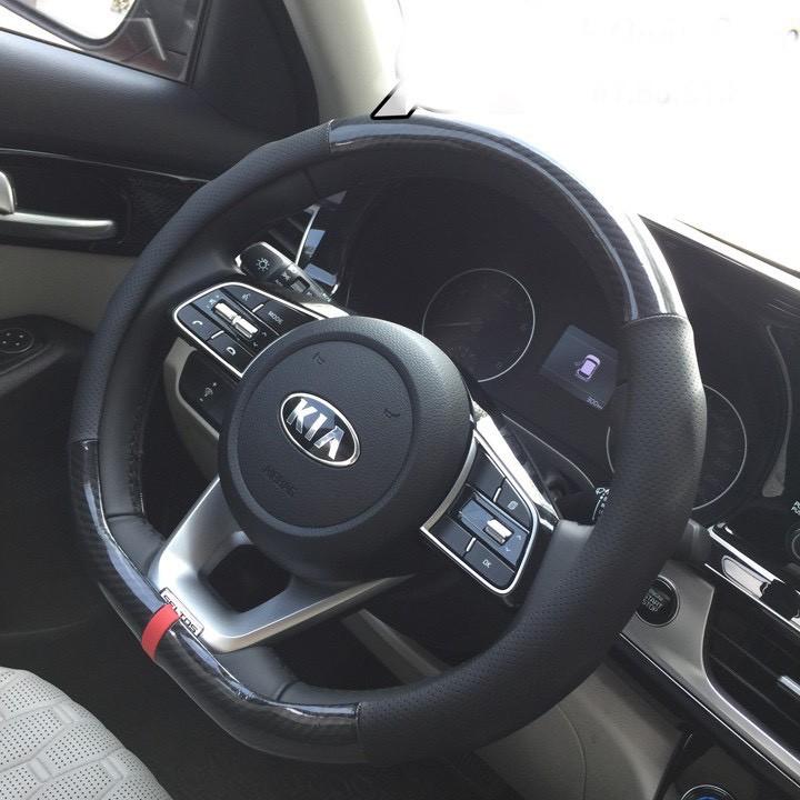 Bọc vô lăng cacbon D cut phối da thoàng khí