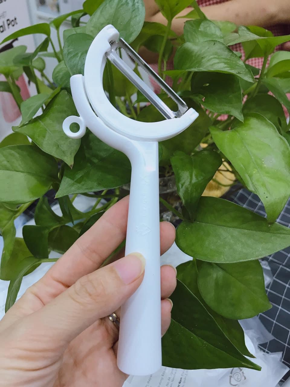 Mua tại Tiktok- Lưỡi thép không rỉ 18/10 siêu bén, xoay 45 độ, người thuận tay trái vẫn sử dụng dễ dàng - Cầm nhẹ và vừa tay - Thích hợp gọt vỏ các loại củ, quả - Dụng cụ gọt rau củ nhỏ gọn, tiện lợi - Rửa sạch để ráo sau khi sử dụng xong-Để xa tầm với của trẻ em-Rửa và hong khô sản phẩm trước khi sử dụng lần đầu - Sử dụng an toàn trong máy rửa chén. (Lưu ý, chỉnh chế độ nhiệt trung bình cho máy rửa chén để tiết kiệm năng lượng và bảo vệ môi trường) - Luôn đảm bảo đầu gọt gắn chặt vào cán dao khi sử dụng và giữ các ngón tay xa lưỡi dao để tránh bị thương-Chỉ sử dụng đầu góc rộng để cắt hoặc bào mỏng các loại rau củ dài và to - Luôn đặt thức ăn cần gọt nằm ngang thớt hoặc mặt bàn. Không nên giữ thức ăn trên cao để gọt bằng đầu góc rộng - Vì khoảng cách giữa các lưỡi dao góc rộng lớn nên thích hợp để bào lát mỏng. Dùng gọt vỏ sẽ giảm công năng