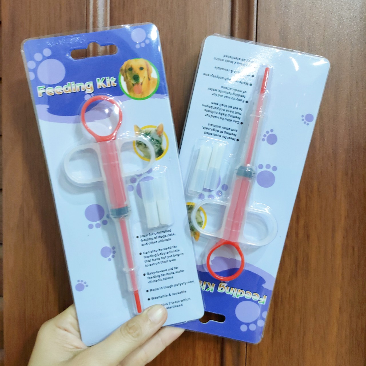 Thiết kế bơm đẩy dạng xilanh với tay cầm đặt ở vị trí thích hợp. Một bộ kèm 2 đầu cao su mềm, có thể sử dụng để bơm thức ăn lỏng cho thú cưng hoặc hỗ trợ trong việc cho thú nuôi uống thuoc dạng lỏng cũng như dạng viên, rất tiện dụng!