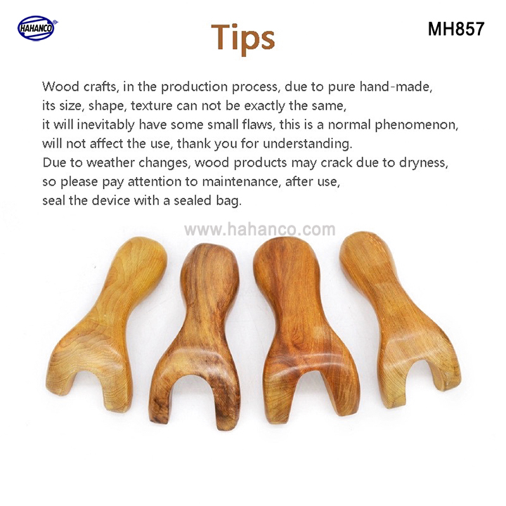 - Chất lượng: gỗ Bách Xanh (có mùi thơm nhẹ) Gỗ tự nhiên trên bề mặt sản phẩm có các mắt gỗ đen và có vệt nứt do thay đổi thời tiết (gỗ già) nên không ảnh hưởng gì đến chất lượng (màu ngẫu nhiên) Chú ý: Sản phẩm này được sản xuất thủ công, có độ sai lệch, họa tiết có thể được thay đổi bởi nhà sản xuất cho hợp xu hướng. Rãnh giữa có tác dụng tác động trực tiếp vào các huyệt đạo dưới da, giúp kích thích tuần hoàn máu, đốt cháy mỡ. Sử dụng đưa đi đưa lại trên phần bụng sẽ giúp kích thích máu huyết lưu thông, giúp giải tỏa khó chịu cho hệ tiêu hóa, đặc biệt thúc đẩy quá trình đốt mỡ bụng nên thường được phái đẹp tin tưởng sử dụng Hướng dẫn sử dụng: Phần đầu: sử dụng hiệu quả cho các triệu chứng đau đầu: đau nữa đầu mãn tính, đau đầu do căng thẳng, đau đầu do viêm xoang, choáng váng, nặng đầu Phần bàn chân: hỗ trợ chữa trị đau gan bàn chân, đau gót chân Phần bàn tay: hỗ trợ chữa trị đau mỏi t.ê lòng bàn tay, tập vật lý trị liệu cho cổ tay. Phần khớp: hỗ trợ chữa trị đau mỏi do viêm khớp dạng thấp ở phần đầu gối, khớp vai, khớp bả vai. Sản phẩm được làm hoàn toàn bằng thủ công từ chất liệu gỗ Bách Xanh, sử dụng massage hàng ngày giúp phục hồi sức khỏe, thư giãn cơ bắp, đặc biệt giúp đánh tan mỡ dưới da nên thường được sử dụng trong các spa chuyên nghiệp. Sản phẩm chỉ được sơn lót (bóng) nên có màu sắc và vân tự nhiên của gỗ. Mục đích của việc phủ sơn là để giảm tình trạng bề mặt bị trầy xướt trong quá trình sử dụng. Nhờ vậy, sản phẩm có độ bền cao hơn, ít bị trầy xước, đặc biệt càng bóng sáng (lên nước) theo thời gian sử dụng. Quý khách chú ý: hiện nay rất nhiều cơ sở bán giả gỗ Bách Xanh, kém chất lượng, thường được làm bằng gỗ tạp và ngâm hóa chất nhuộm màu độc hại, nhưng vẫn ghi là gỗ Bách Xanh để đánh lừa người tiêu dùng. Để đảm bảo quyền lợi hãy chọn mua đúng sản phẩm do CTy HAHANCO sản xuất. Cam kết:
