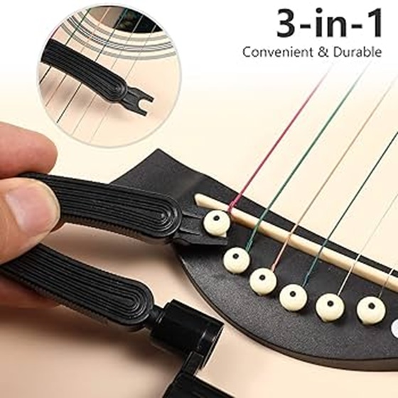 Dụng Cụ Thay Dây Đàn Guitar 3 in 1 – Nhỏ Gọn, Đa Năng, Cực Kỳ Tiện Lợi! Bạn thường xuyên phải thay dây đàn nhưng cảm thấy bất tiện, mất thời gian và dễ