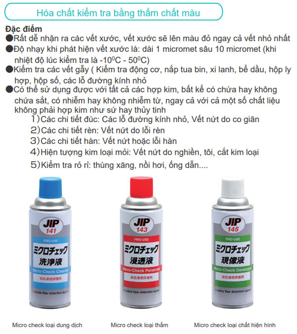CÔNG DỤNG: - Sản phẩm được sử dụng để làm sạch bề mặt các mối hàn, sản phẩm, vật liệu cần được kiểm tra lỗi. ĐẶC ĐIỂM - Sản phẩm dạng chai xịt, dễ dàng