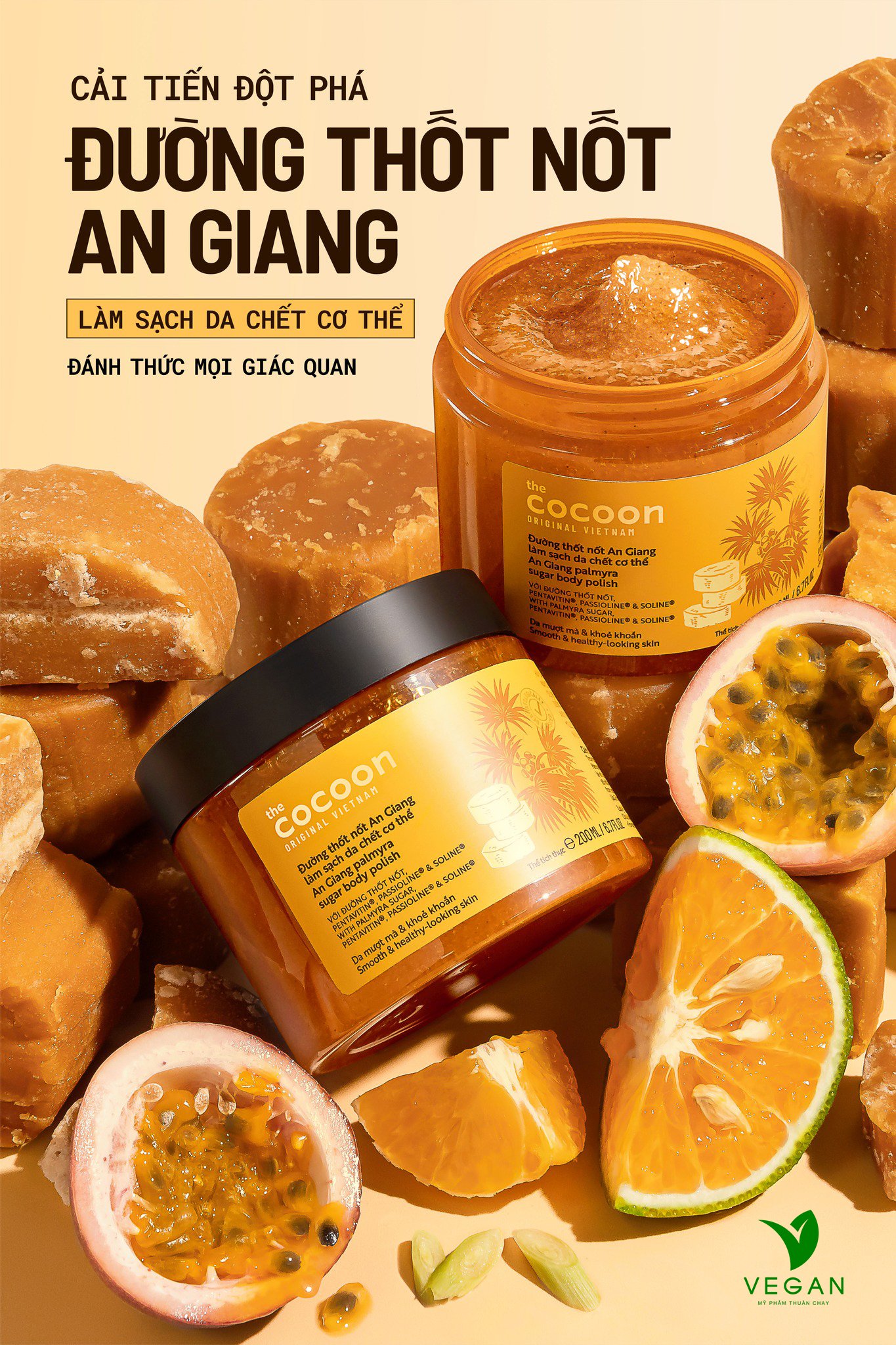 Đường thốt nốt An Giang làm sạch da chết cơ thể 200ml cocoon Thuần Chay Các tinh thể đường cọ thốt nốt mềm mại được pha trộn với Vitamin B5 và dầu macadamia (mắc-ca) nhẹ