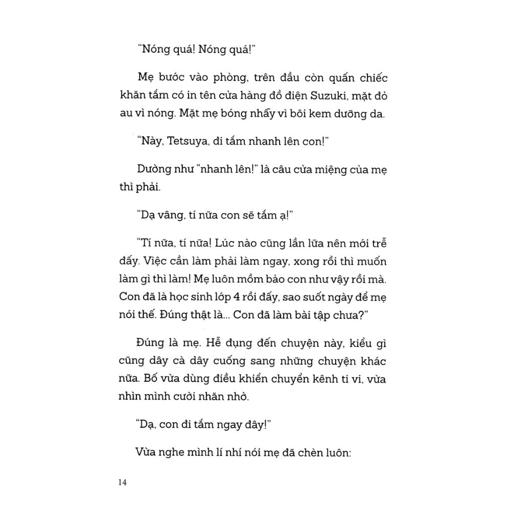 “Trong gia đình mình, mẹ là người có uy nhất. So với bố, mẹ có uy và đáng sợ hơn nhiều. Hôm nay cũng thế, mới sáng sớm đã nghe mẹ cằn nhằn, ồn ào hết cả nhà làm mình rất khó chịu. Trên đường đến trường, mình đã cố nghĩ xem tại sao mẹ lại cằn nhằn như thế, nhưng mẹ nói rất nhiều khiến mình không thể nào nhớ được nguyên nhân làm mẹ cáu. Có điều, mình nghĩ, tức giận là việc của mẹ, còn mình chỉ là chỗ để mẹ trút cơn tức lên thôi.”