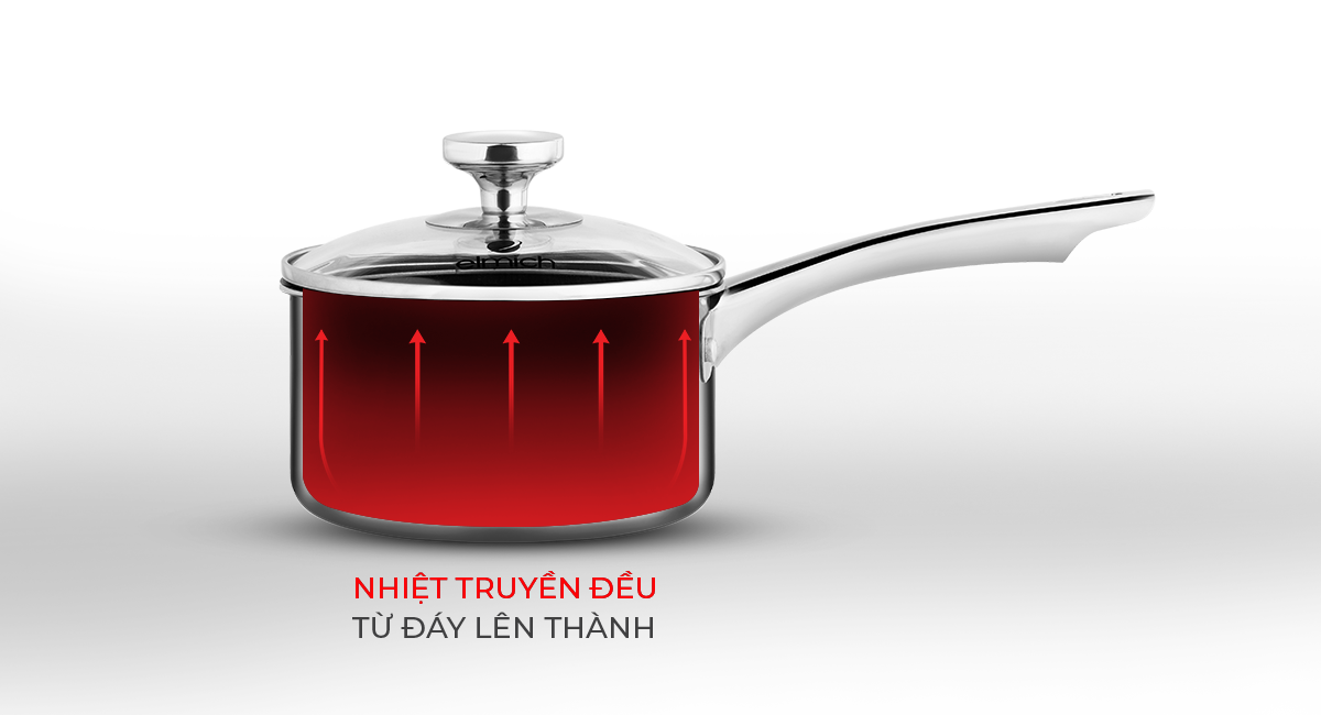 Phía trong là lớp nhôm dày. Đây là chất liệu truyền - giữ nhiệt tuyệt vời giúp nhiệt phân bổ nhanh chóng, đồng đều. Thực phẩm được làm nóng từ cả thành và đáy mà không lo bị cháy hay bám dính nhờ đó món ăn lưu giữ trọn vẹn hương vị cũng như giá trị dinh dưỡng.