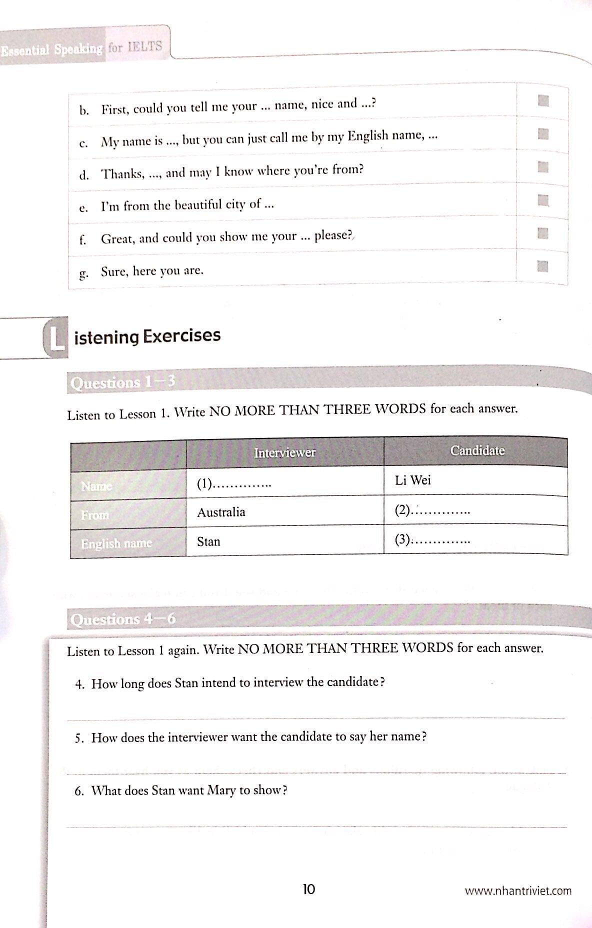 Listening Exercises: Mục tiêu luyện nghe được đặt ra dựa vào mục tiêu nói của phần này. Phần này gồm các bài tập nghe có thể xuất hiện trong môn nói IELTS.