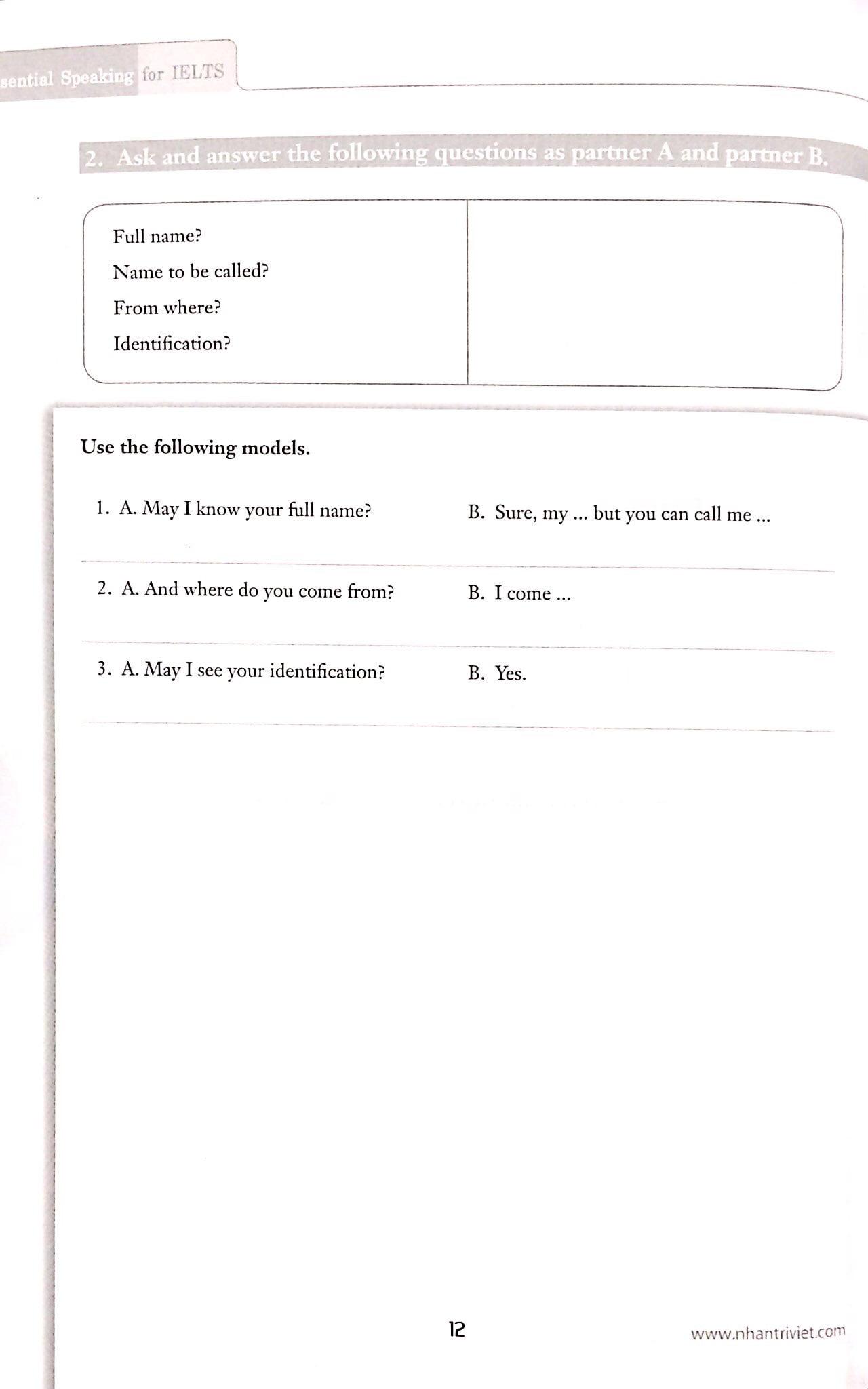 Giáo trình gồm 12 bài được biên soạn dựa trên những đề tài đa dạng (bao gồm nhiều phương diện trong giao tiếp xã hội). Các bài này sẽ giúp thí sinh có được kiến thức cơ bản để đạt kết quả cao ở môn nói IELTS, đồng thời giúp thí sinh học tập trong không khí vui vẻ, thoải mái.