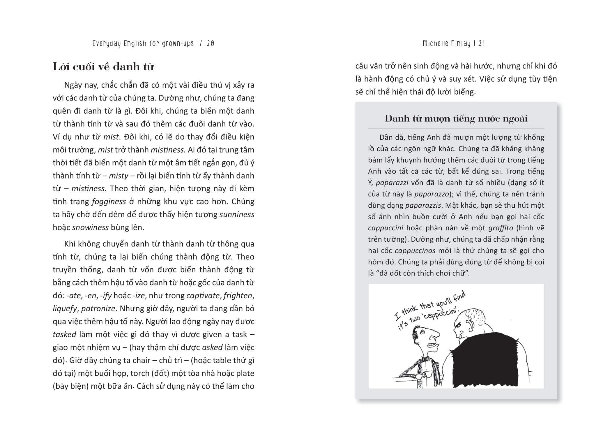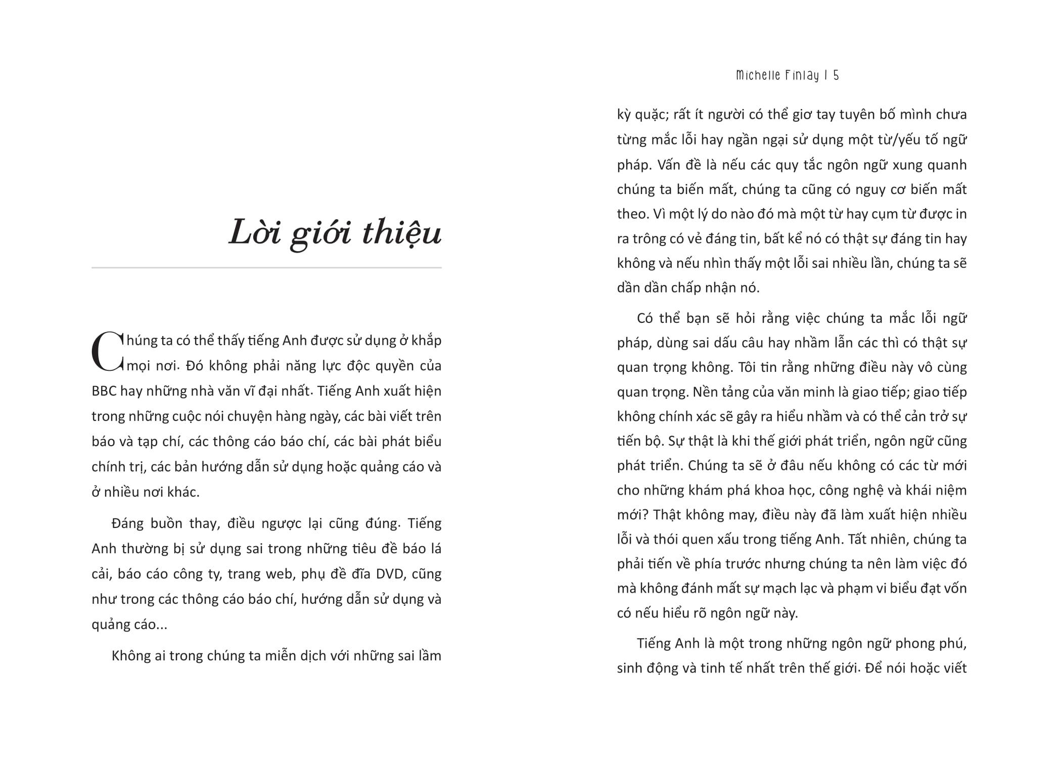Bắt đầu từ bảng chữ cái, cuốn sách sẽ từng bước khám phá từ những yếu tố cơ bản của tiếng Anh viết và nói – chính tả, trật tự từ, dấu câu, từ loại – cho đến ngữ điệu, những sai lầm cần tránh và bí quyết để đảm bảo tính mạch lạc và thậm chí là tính thanh lịch.