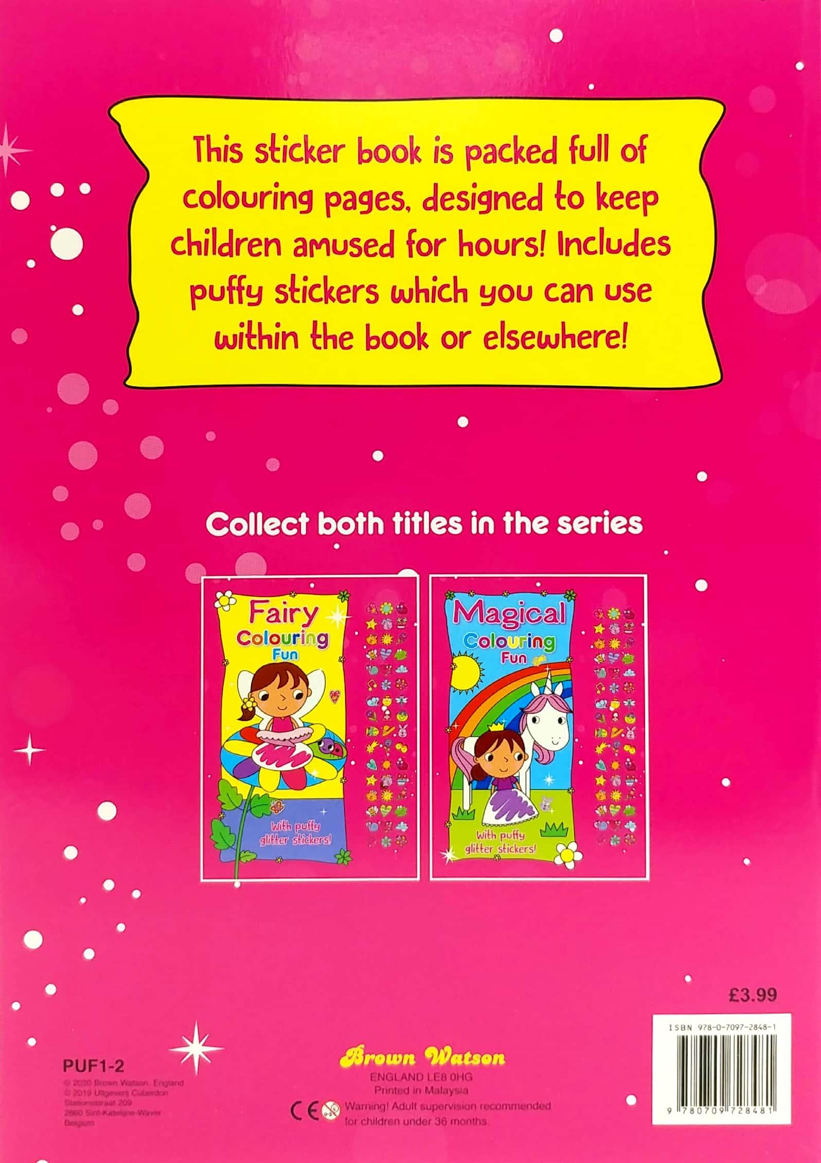 Fairy Colouring Fun With Puffy Glitter Stickers Fairy Colouring Fun Book with Puffy Glitter Stickers Includes puffy stickers which can be used within this This sticker book is packed full of colouring pages, designed to