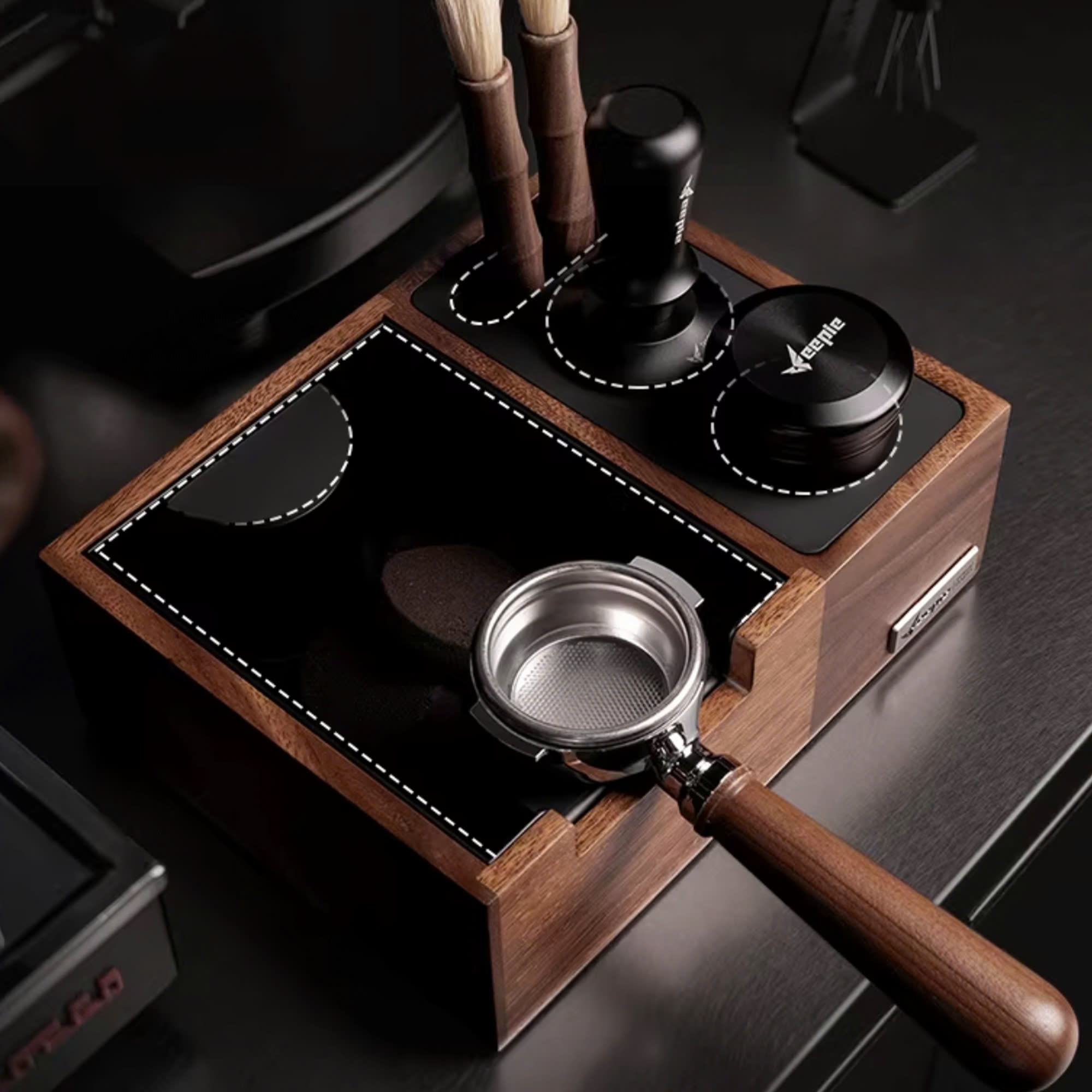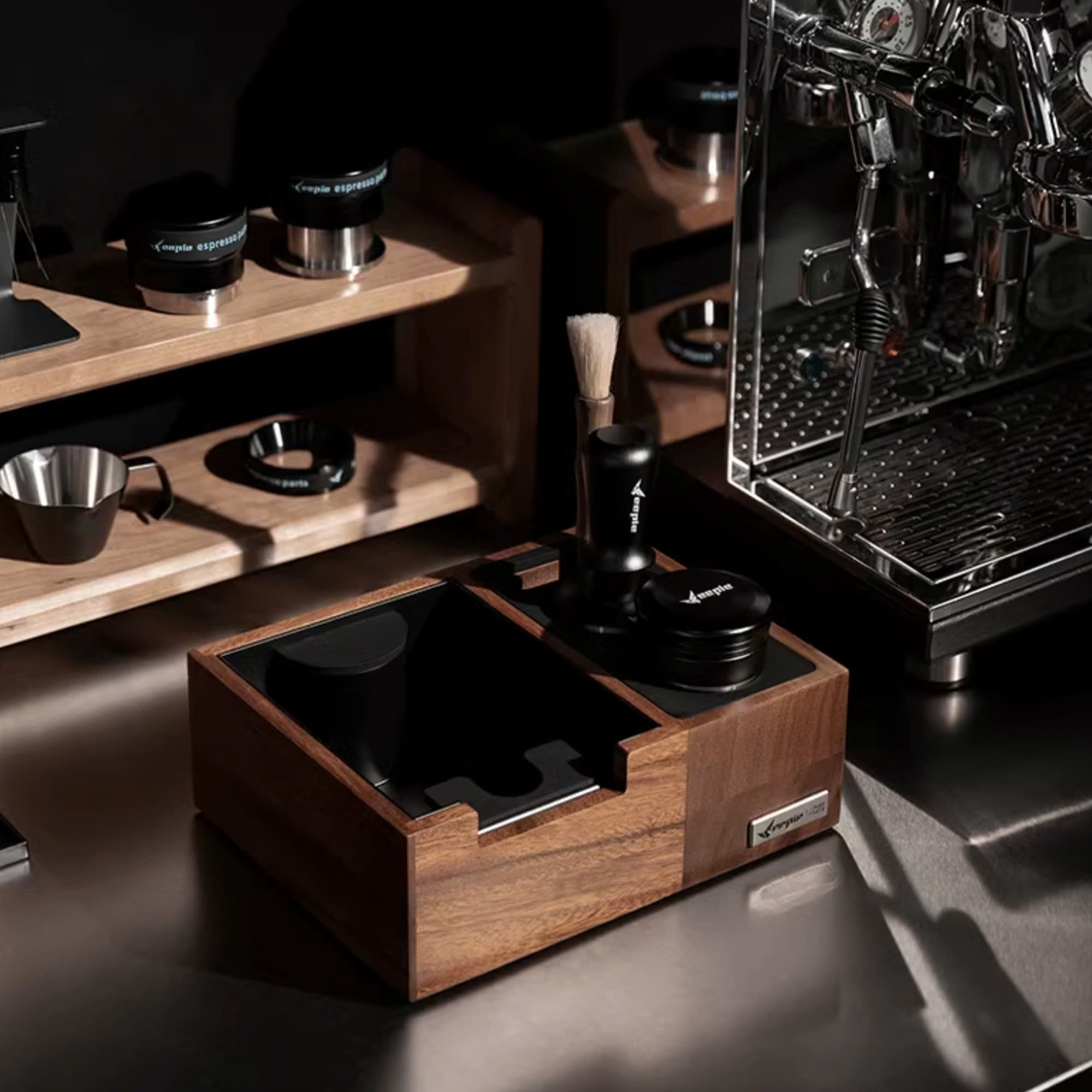 ️ Không chỉ là đế nén, sản phẩm còn tích hợp giá đỡ tay cầm nén cà phê, đỡ tamper, OCD và nơi đựng dụng cụ vệ sinh máy – giúp tối ưu không gian và quy trình pha chế.