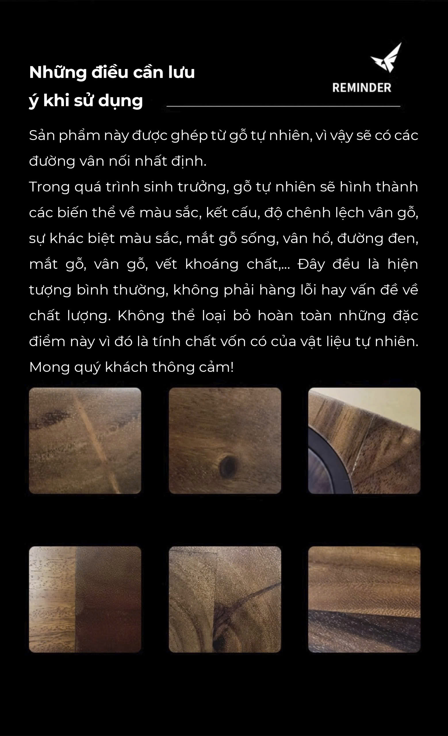 • Chất liệu: Gỗ óc chó tự nhiên, silicone, sắt