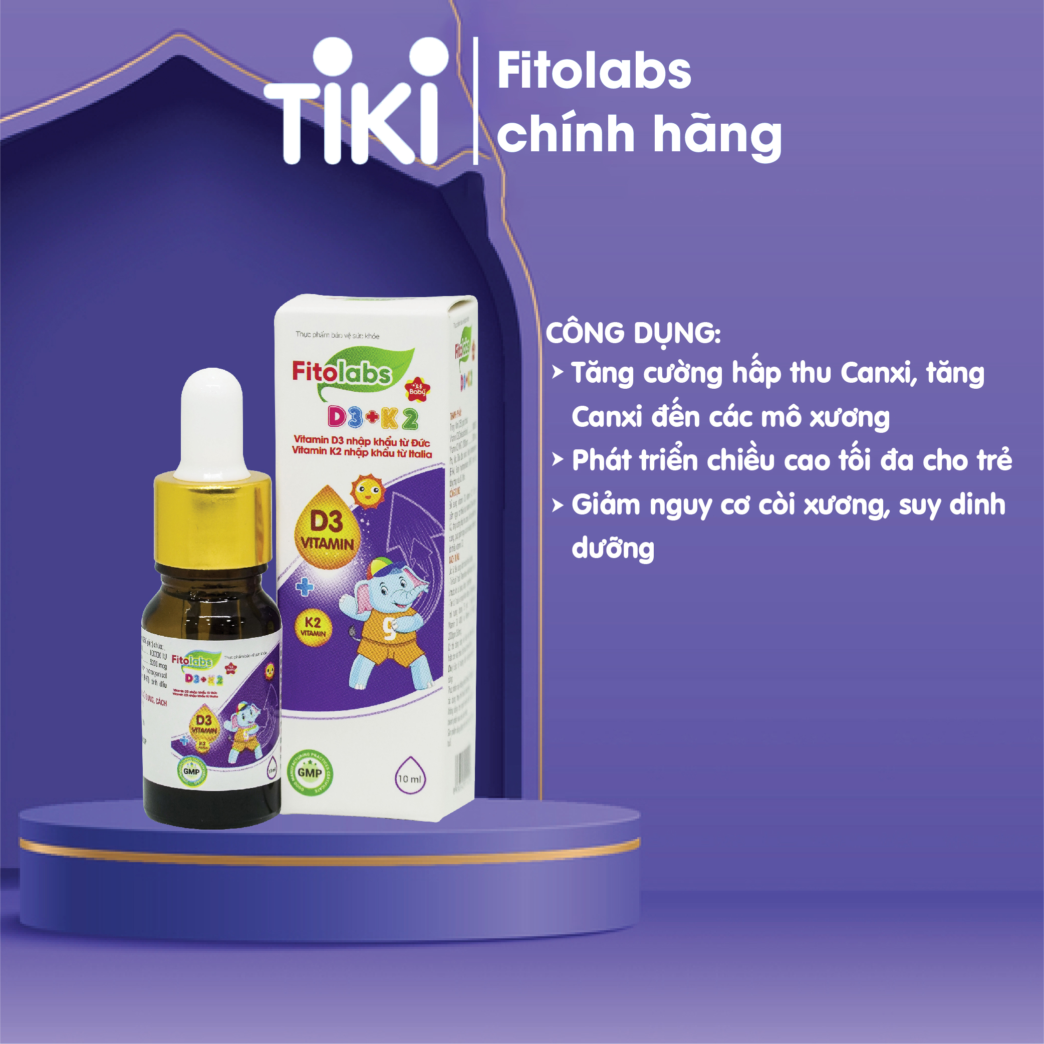 - FITOLABS D3 + K2 chứa bộ đôi vitamin D3 và K2 với những ưu điểm nổi trội: