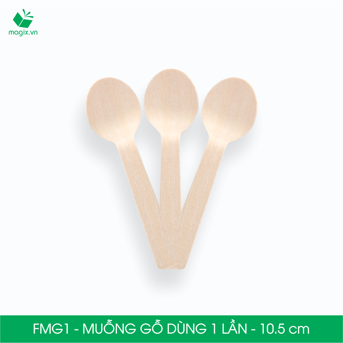 ✨FMG1 - Combo 100 Muỗng gỗ ngắn 10.5 cm dùng 1 lần - Thìa gỗ ngắn dùng 1 lần tiện lợi thân thiện môi trường