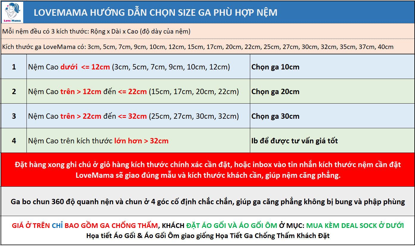 Ga chống thấm vải Cotton mềm mại cao cấp loại 1 chính hãng LoveMama