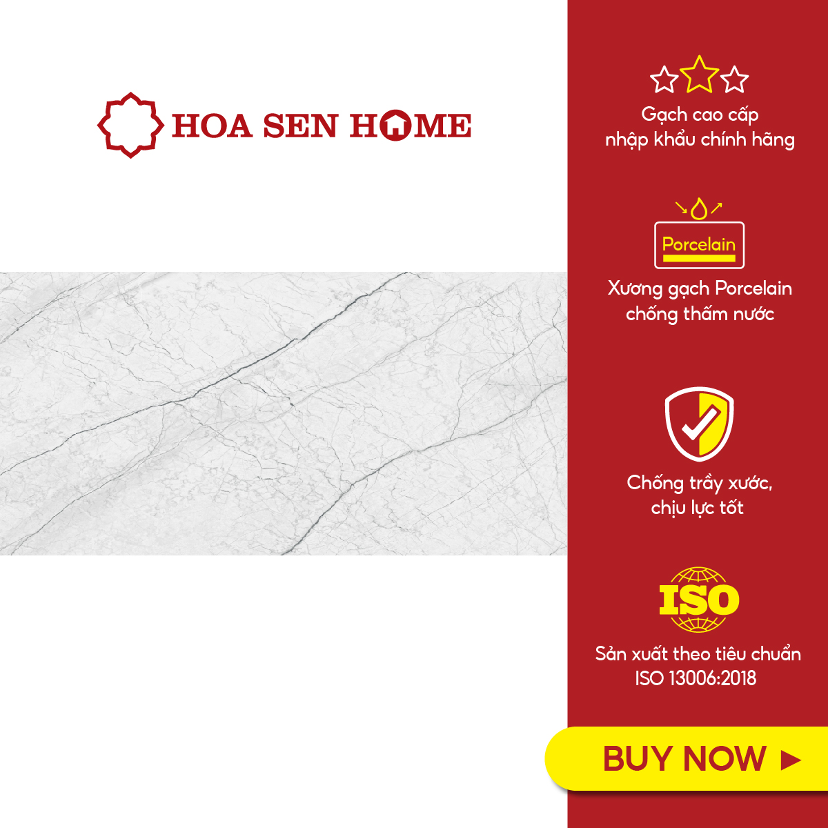 - Loại gạch lát nền này có màu nền trắng thuần được dịu nhẹ và điểm vài vân đá tự nhiên màu xám. Những vân đá này giúp giảm tính phản quang nổi bật, hạn chế gây lóa mắt của màu trắng trơn và đồng thời tạo sự trung tính để dễ dàng phối với cả những nội thất tone màu sáng và tối khác nhau. Bên cạnh đó, các vân đá thanh mảnh tạo kiểu dáng tựa như mạch đá tự nhiên góp phần tăng tính sang trọng. Do đó, loại gạch lát nền này phù hợp để ốp tường hoặc lát sàn tại các công trình trang trọng như văn phòng, trung tâm thương mại, cơ quan hành chính,