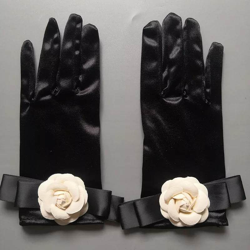 ✨Găng tay chất liệu satin màu đen đính hoa cho Cô dâu và Dạ hội, đi tiệc, sự kiện, đạo cụ cosplay, chụp ảnh, studio MS: 45151