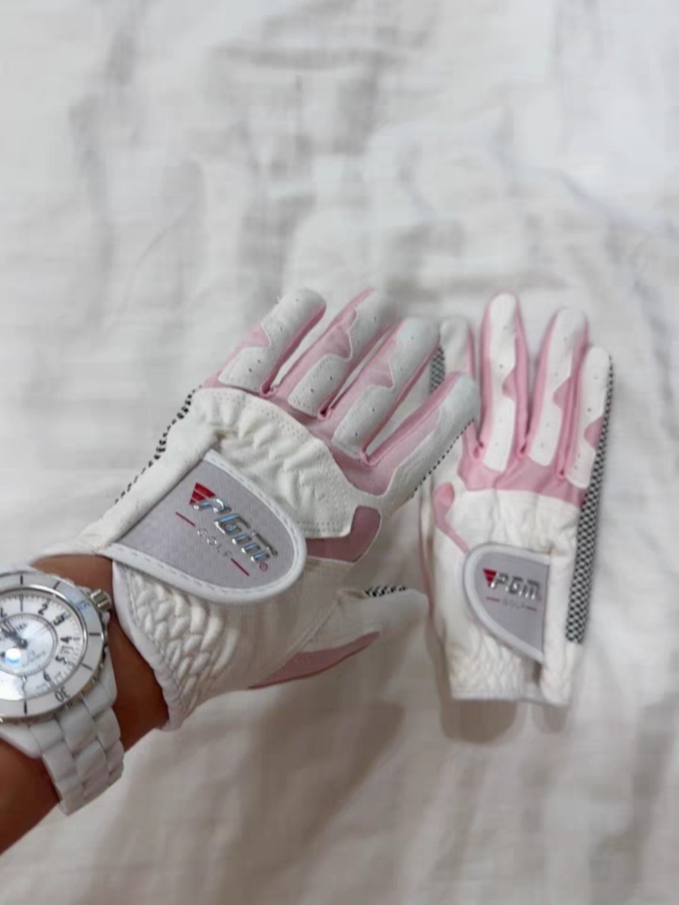 Thương hiệu : PGM Mô tả sản phẩm ST032 là mẫu găng mới của năm 2023 với thiết kế hở ngón thời trang và chất liệu lưới thoáng mát. - Màu sắc: Trắng hồng, trắng
