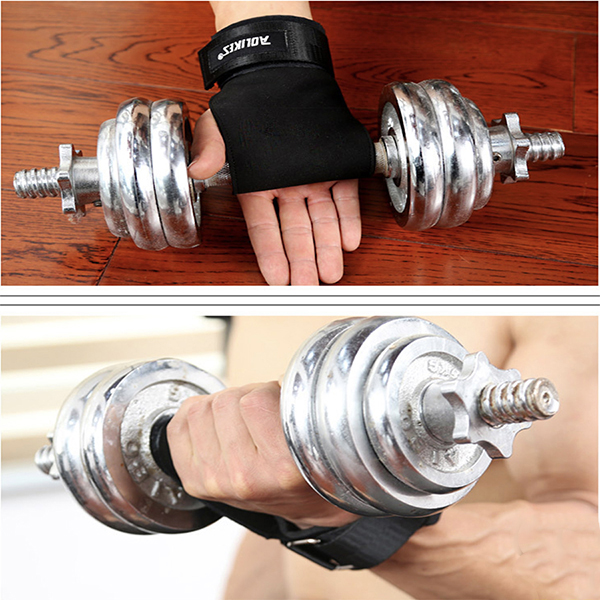 Găng tay tập gym hở mu AOLIKES A-7639 Sport Wrist Bands AOLIKES 1 Pair Sport Fitness Wrist bands Pull Up Grip Belt Non-slip Palm Protector Gym Wristbands for Barbell dumbbell Training Găng tay tập gym