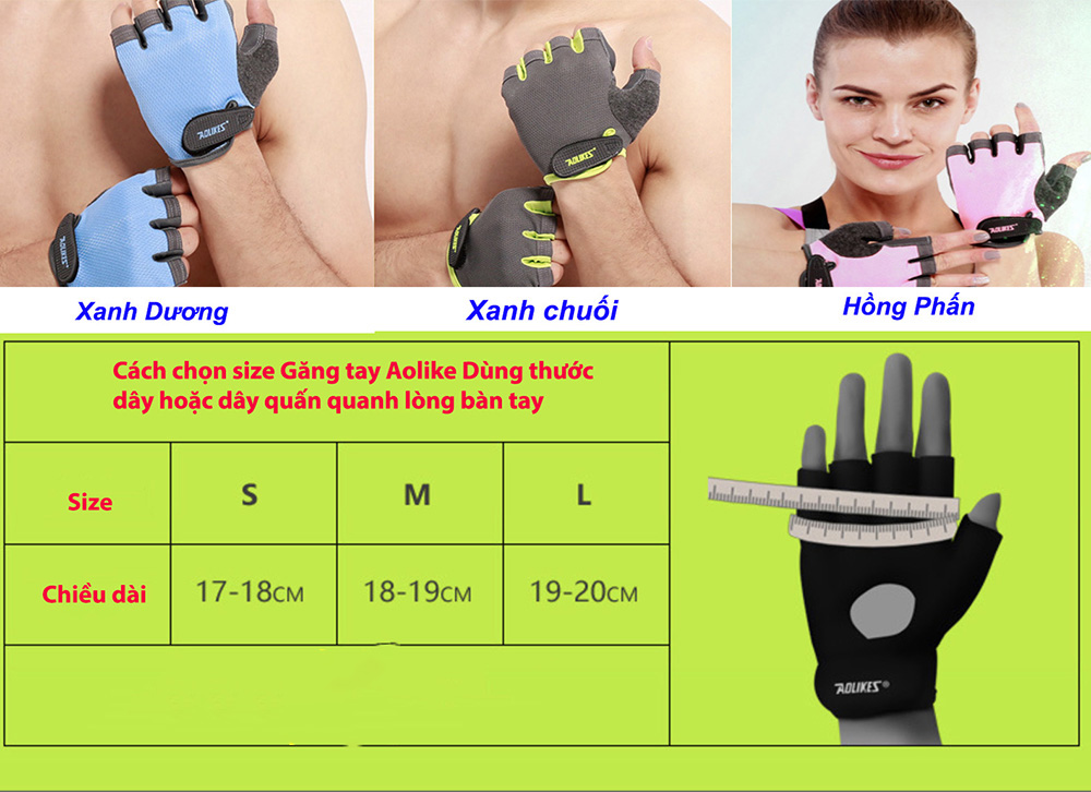 Găng Tay Nửa Ngón Tập Gym, Tập Tạ Tích Hợp Quấn Cổ Tay Aolikes AL113B AL113 113 (1 đôi) - Chính Hãng ---- BẢNG SIZE TRONG PHẦN HÌNH ẢNH ----- - Cách chọn size +