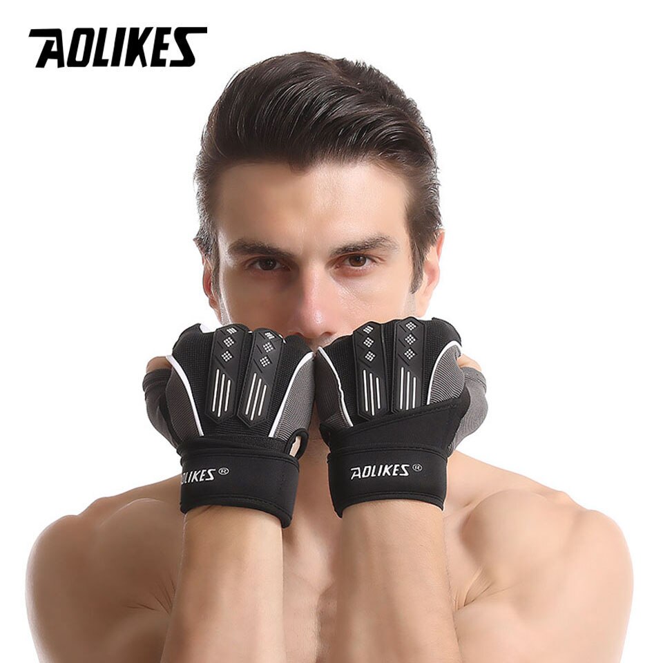 Găng tay tập gym AOLIKES 7639 hở mu bảo vệ lòng bàn tay sport wrist band - Đối tượng sử dụng: Gym, Yoga, thể dục dụng cụ, leo núi, võ thuật - Chất liệu: Silicon, Nylon