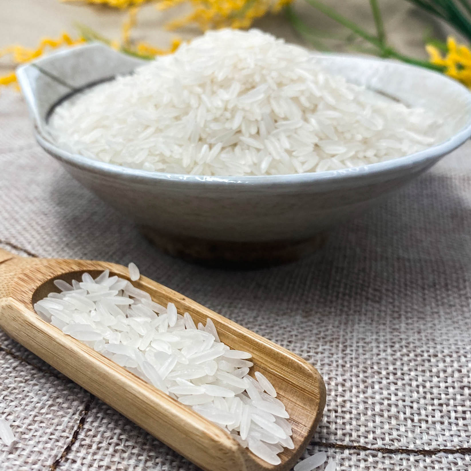 - THƠM NGON: Gạo Hoa Lúa có hương thơm tự nhiên, thơm lâu, vị ngọt đậm đà từ đầu lưỡi lắng đọng trong từng hạt, cơm dẻo cả khi để nguội.