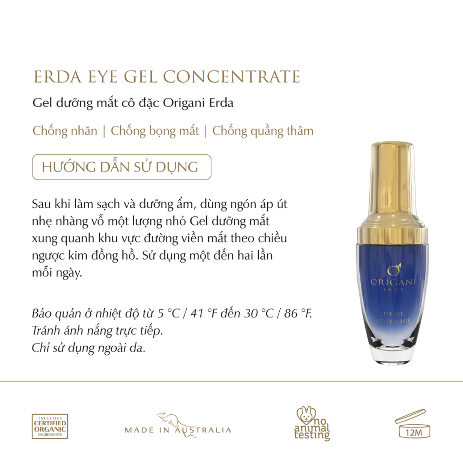 ✨Gel Dưỡng Mắt Cô Đặc - Origani Erda Eye Gel Concentrate 30ml - Có chứng nhận hữu cơ - Xuất xứ Úc - Cung cấp dưỡng chất và độ ẩm cho mắt