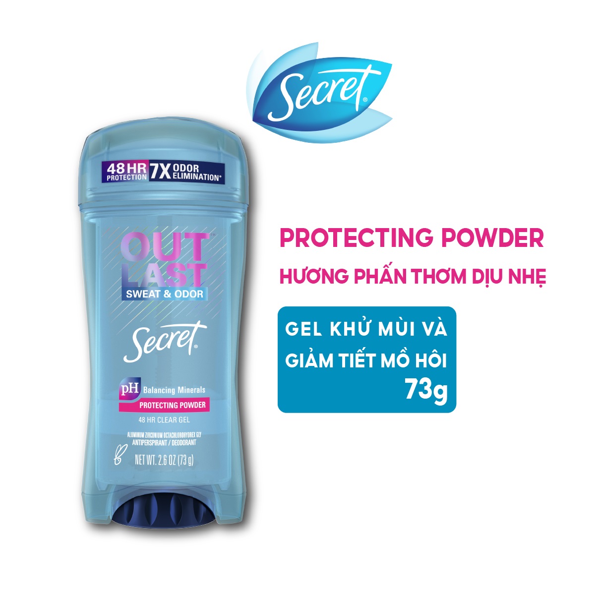 Gel Khử Mùi Secret Outlast Protecting Powder Dành Cho Nữ 73g Khử mùi dạng gel độc đáo, cùng nhiều loại hương thơm nhẹ nhàng. Giúp hạn chế tiết mồ hôi, kháng khuẩn và ngăn mùi