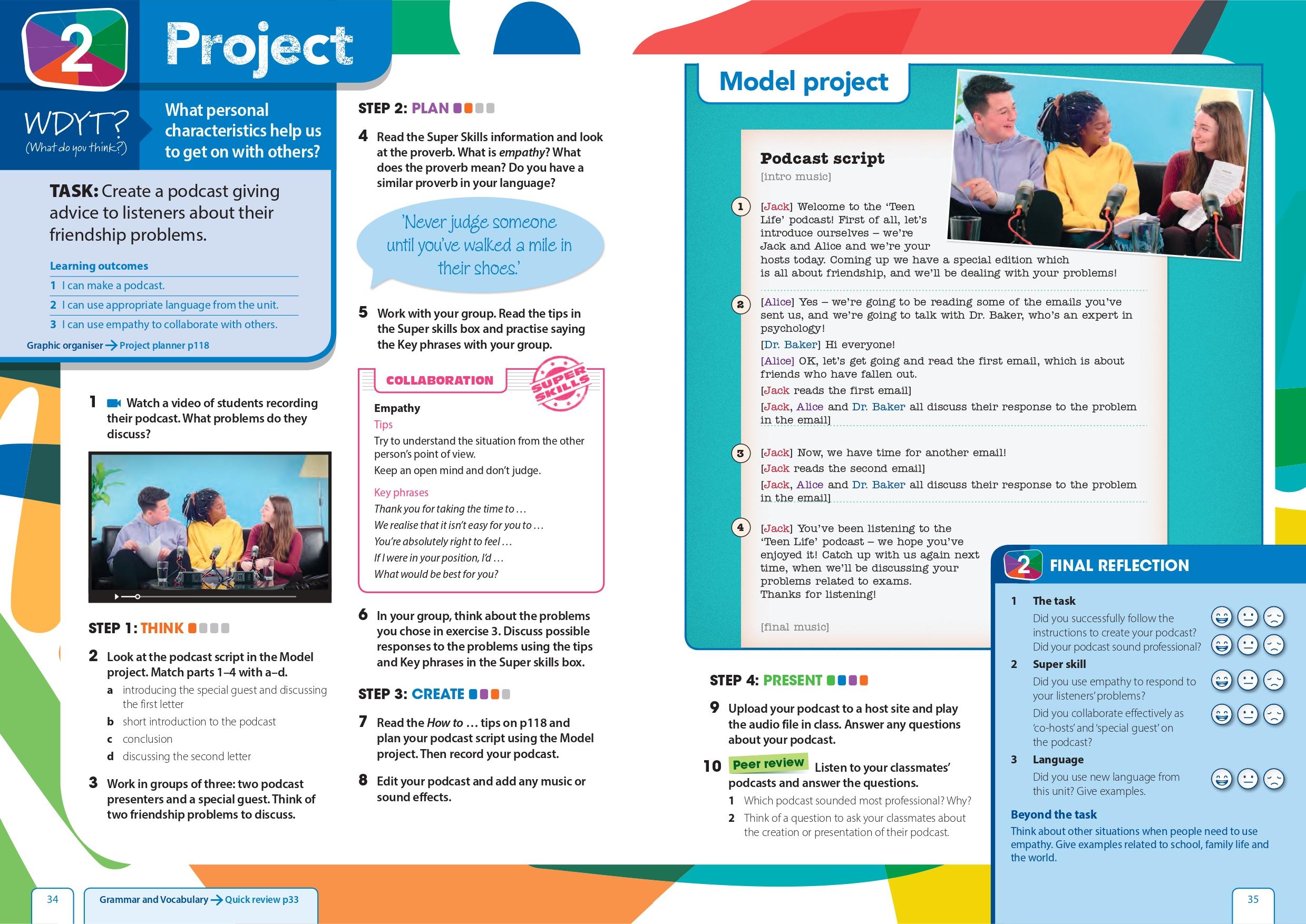 Get Involved! provides authentic contexts and empowers students to talk about real-life issues with confidence through the Collaborative Projects that feature in every unit of the Student's Book.