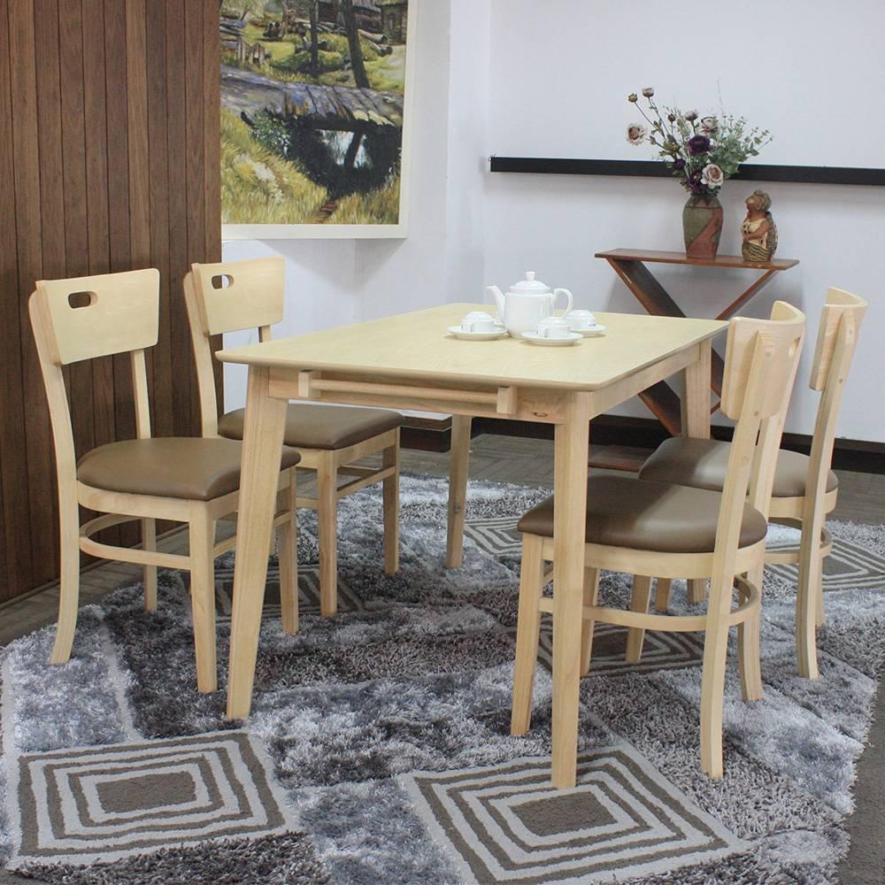 Chất liệu chính: Gỗ cao su; Màu sắc: Màu tự nhiên; Thời hạn bảo hành: 24 tháng; Thời gian giao hàng: 3-7 ngày; Phòng chính: Phòng ăn; Yêu cầu lắp đặt: Không; Tình trạng tồn kho: Có sẵn; Phong cách: Modern; Hoàn thiện: Bọc nệm; Chức năng: Bàn ăn; Loại sản phẩm: Bàn; Xuất xứ: Việt Nam; Đơn vị tính: Cái; Kiểu dáng: Hình chữ nhật;