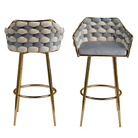Ghế ngồi quầy bar nệm vải nhung chân mạ màu vàng gold sang trọng Chất liệu: vải nhung, chân thép mạ màu vàng gold Màu sắc: xám / hồng / xanh dương đậm / xanh