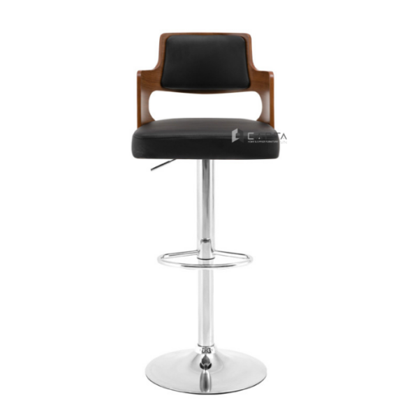 ✨Ghế bar lưng gỗ màu nâu nệm đen CB2301-P Nội thất Capta Ghế quầy bar tăng giảm độ cao lưng tựa gỗ nệm PVC hiện đại chân thép mạ chrome bóng tại tp hcm