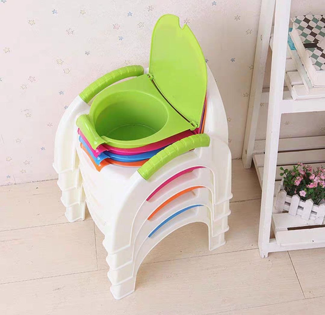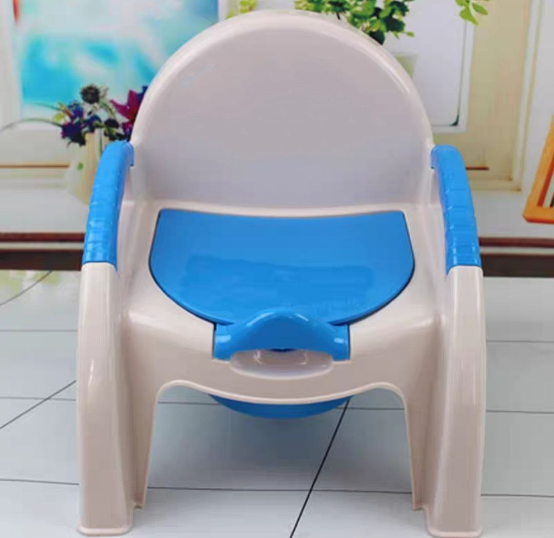 🪑 Thiết kế: 4 chân vững chắc, tựa lưng chống gù, tay vịn chắc chắn, giúp bé ngồi vệ sinh đúng tư thế và thoải mái hơn