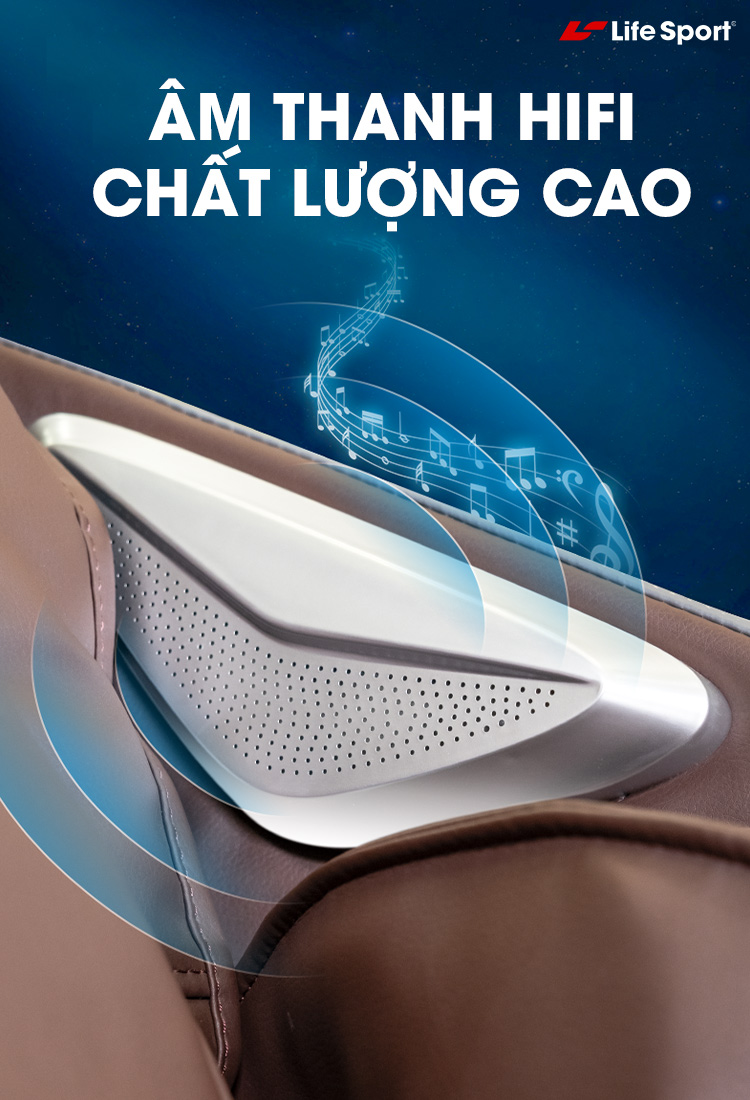 Ghế massage Lifesport LS-399 còn được trang bị loa nghe nhạc với âm thanh chất lượng cao giúp bạn tận hưởng những ca khúc yêu thích khi thư giãn trên sản phẩm này, dễ dàng kết nối với mọi thiết bị di động thông qua kết nối bluetooth cực kỳ thuận tiện cho người dùng, sản phẩm luôn mang lại những tiện ích và tiện nghi nhất cho khách hàng giúp bạn thư giãn, thả lỏng cơ thể và ngủ ngon hơn.