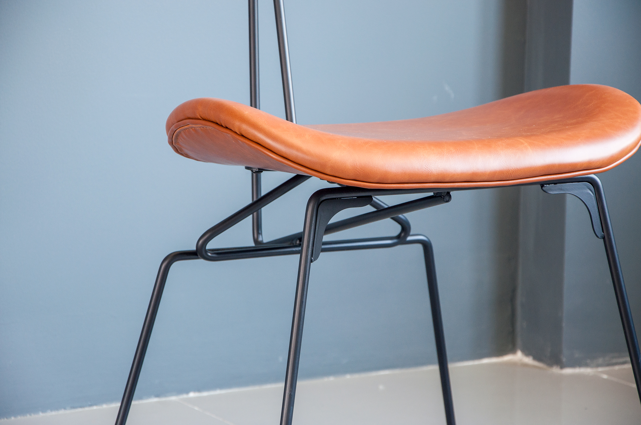 Chân thép sơn tĩnh điện, nệm PU, tựa lưng bằng gỗ tự nhiên
