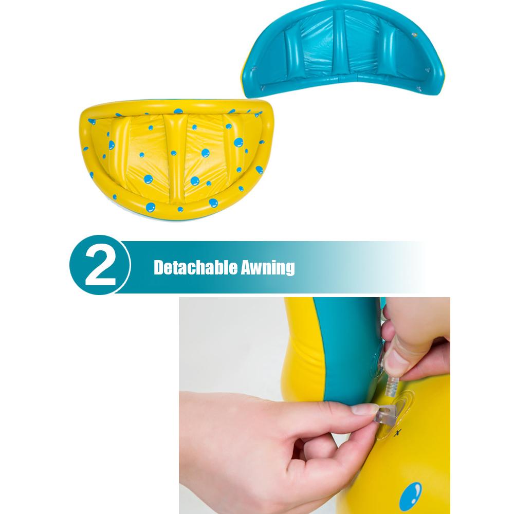 This is a premium Toddler and Baby inflatable seat which comes with a handy shade cover to protect against harmful UV rays. Features: Detachable Sunshade: Block sunlight and ultraviolet rays, when your kids are swimming