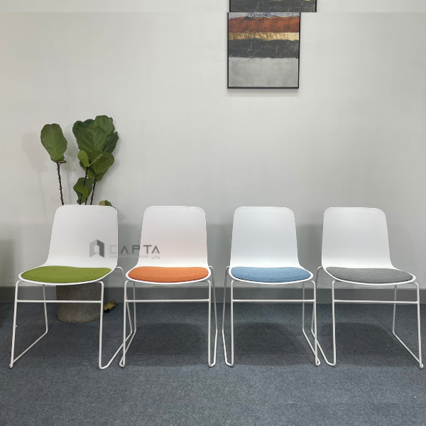 Ghế tiếp khách thân nhựa chân vòng có nệm hiện đại Ghế ngồi học bài làm việc nhỏ gọn CC1552-P HCM