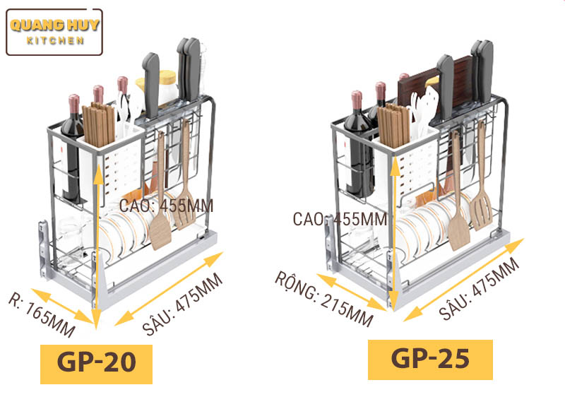 - Giá để dao thớt gia vị mã GP-25. Kích thước mặt cánh 250mm. Kích thước khoang tủ lọt lòng như sau. Rộng: 215mmm, Sâu: 475mm. Cao: 455mm