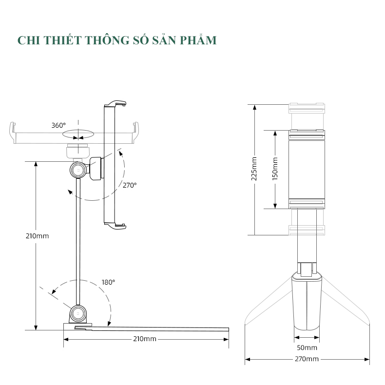 Đặc điểm nổi bật: - Hợp kim nhôm nguyên khối + ABS cao cấp - Chất liệu cao cấp, ổn định và bền chắc - Tương thích cho điện thoại 4-7 inches - Tương thích