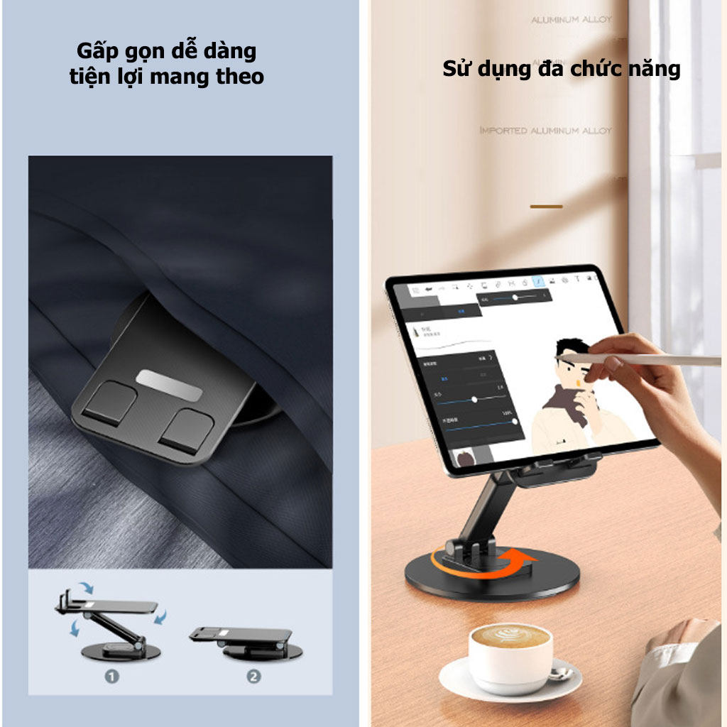 Giá Đỡ iPad, Điện Thoại Hợp Kim Nhôm – Xoay 360°, Cứng Cáp & Đẳng Cấp!
