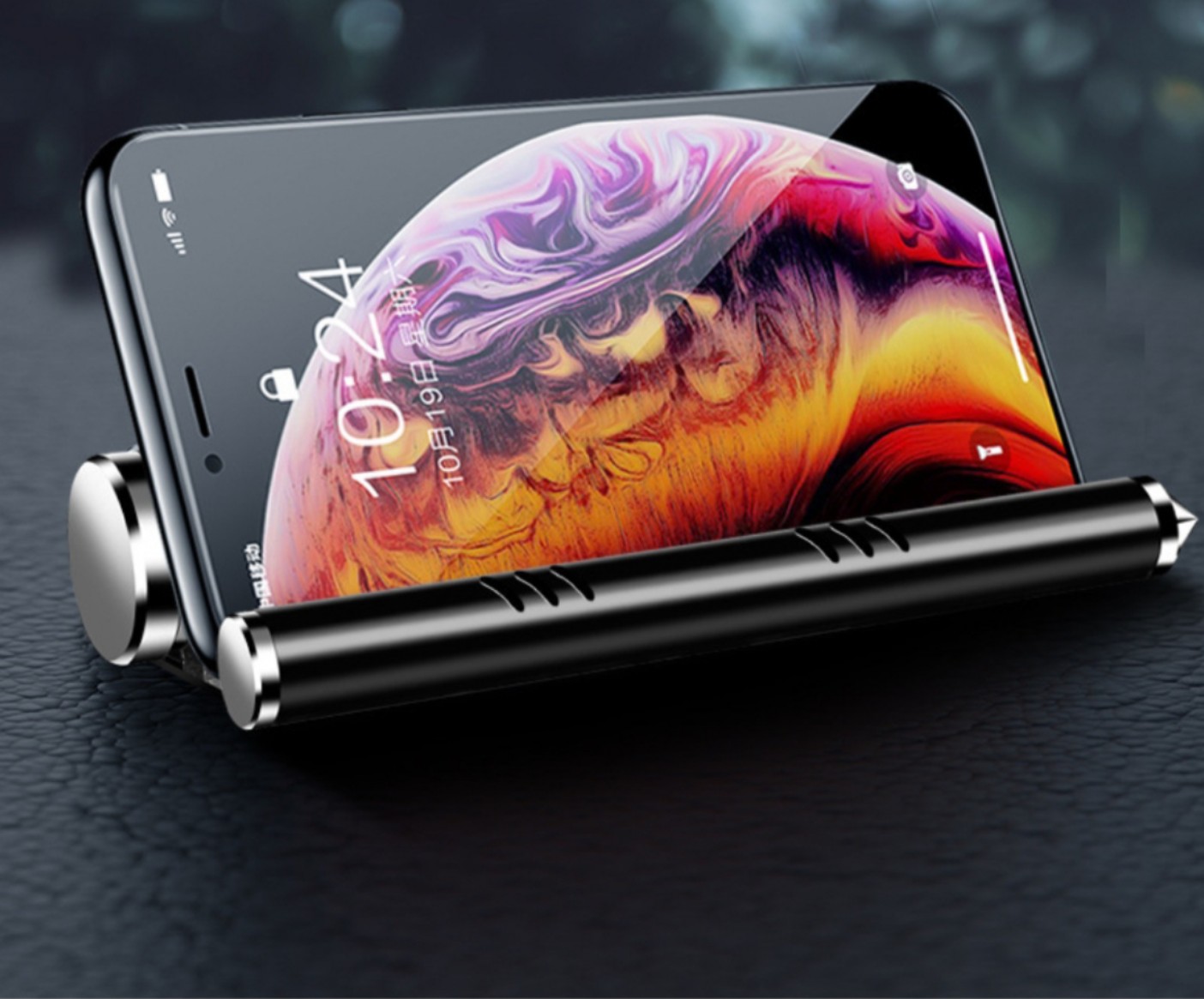 Thiết kế đa năng năng vừa làm giá đỡ điện thoại vừa làm thiết bị phá kính ô tô thoát hiểm