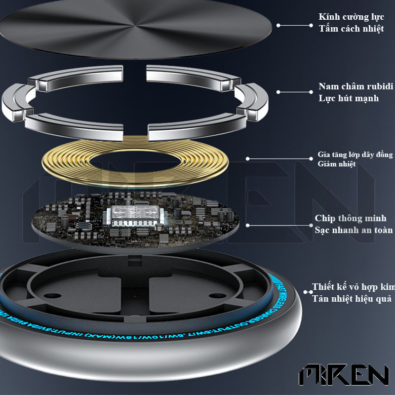 Đặc điểm sản phẩm: - Chất liệu: Hợp kim nhồm + kính cường lực + ABS + PC + Silicon - Công suất: 15W Max - Khoảng cách truyền: < 8mm - Tương thích: Thiết