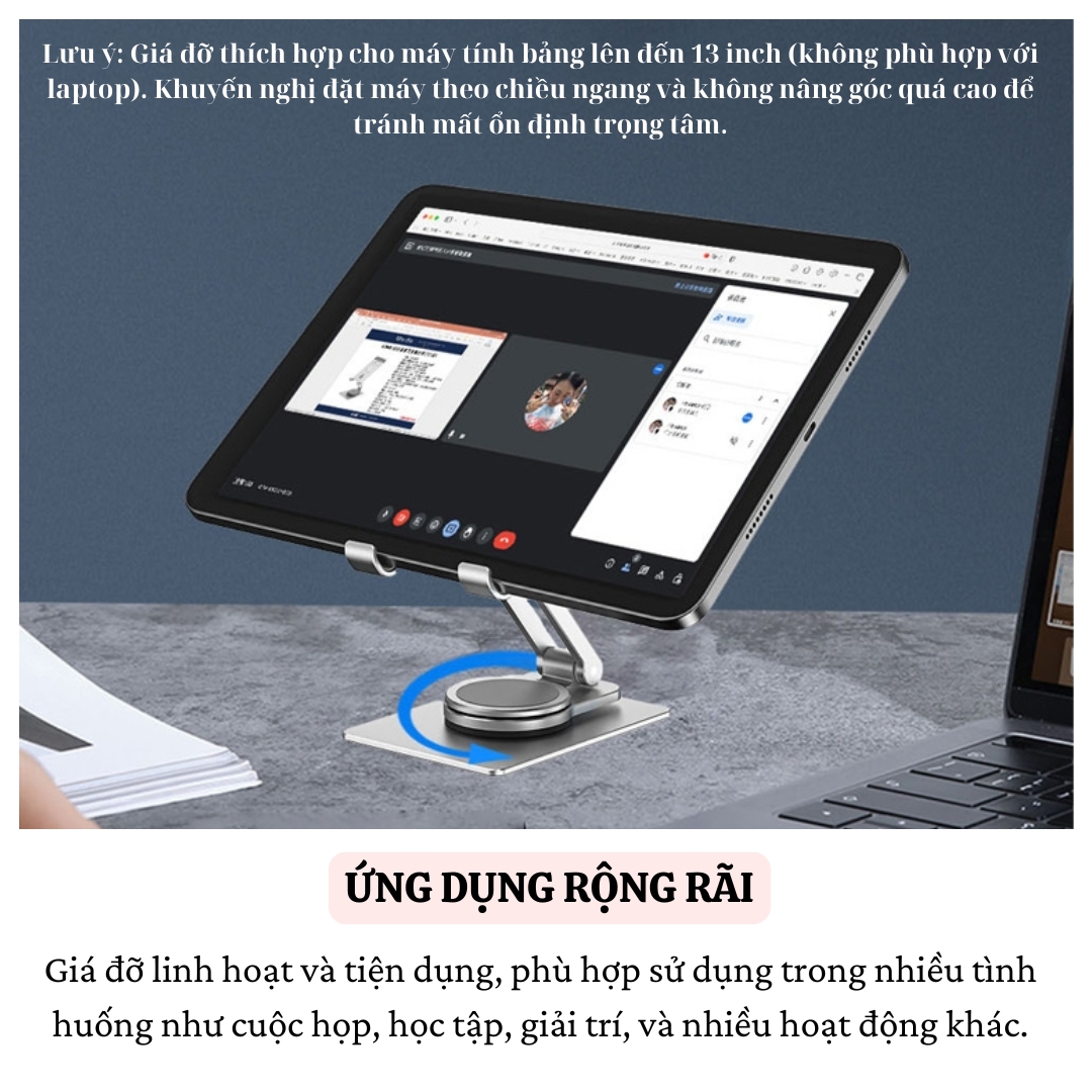 MÔ TẢ SẢN PHẨM - Với tính năng xoay 360 độ và khả năng điều chỉnh mọi góc độ, sẽ giúp bạn dễ dàng thao tác và sử dụng máy tính bảng một cách linh
