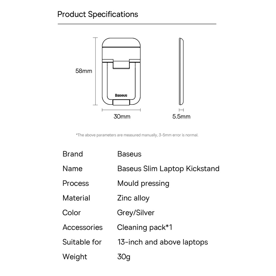Đế Tản Nhiệt Đa Năng Siêu Nhỏ Gọn Cho Laptop/Mac-book Ba-se-us Slim Laptop Kickstand (2pcs) - Sở hữu kích thước siêu nhỏ, siêu mỏng chỉ 5mm tiết kiệm không gian, bỏ ba lô cực kỳ