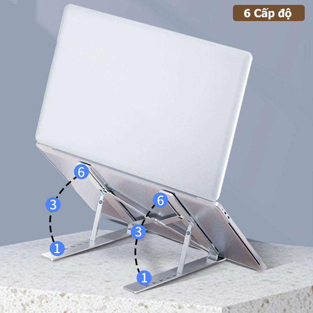 Stand Nhôm Tản Nhiệt Dành Cho Macbook, Laptop Có Thể Gấp Gọn Và Điều Chỉnh 6 Nấc Độ Cao Lucas - Đế máy tính xách tay: Hợp kim nhôm; điều chỉnh; có thể gập lại