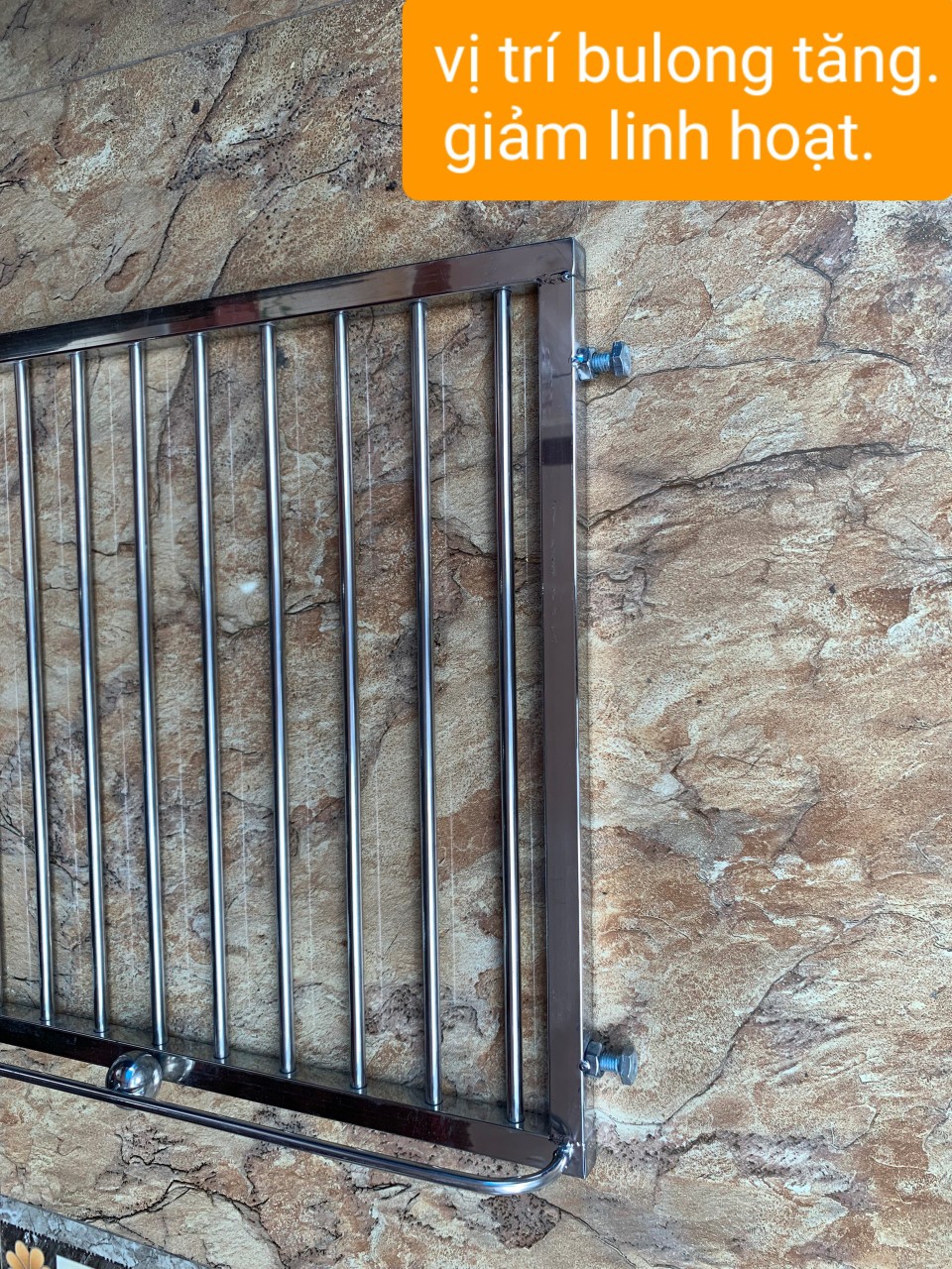 - / sử dụng c lê 17 nới đều bulong 2 bên đạp vào thành tường hoặc gỗ để cố định giá inox *** GIÁ INOX NỘI THẤT NHÀ .BẾP THÔNG MINH (KAOA)