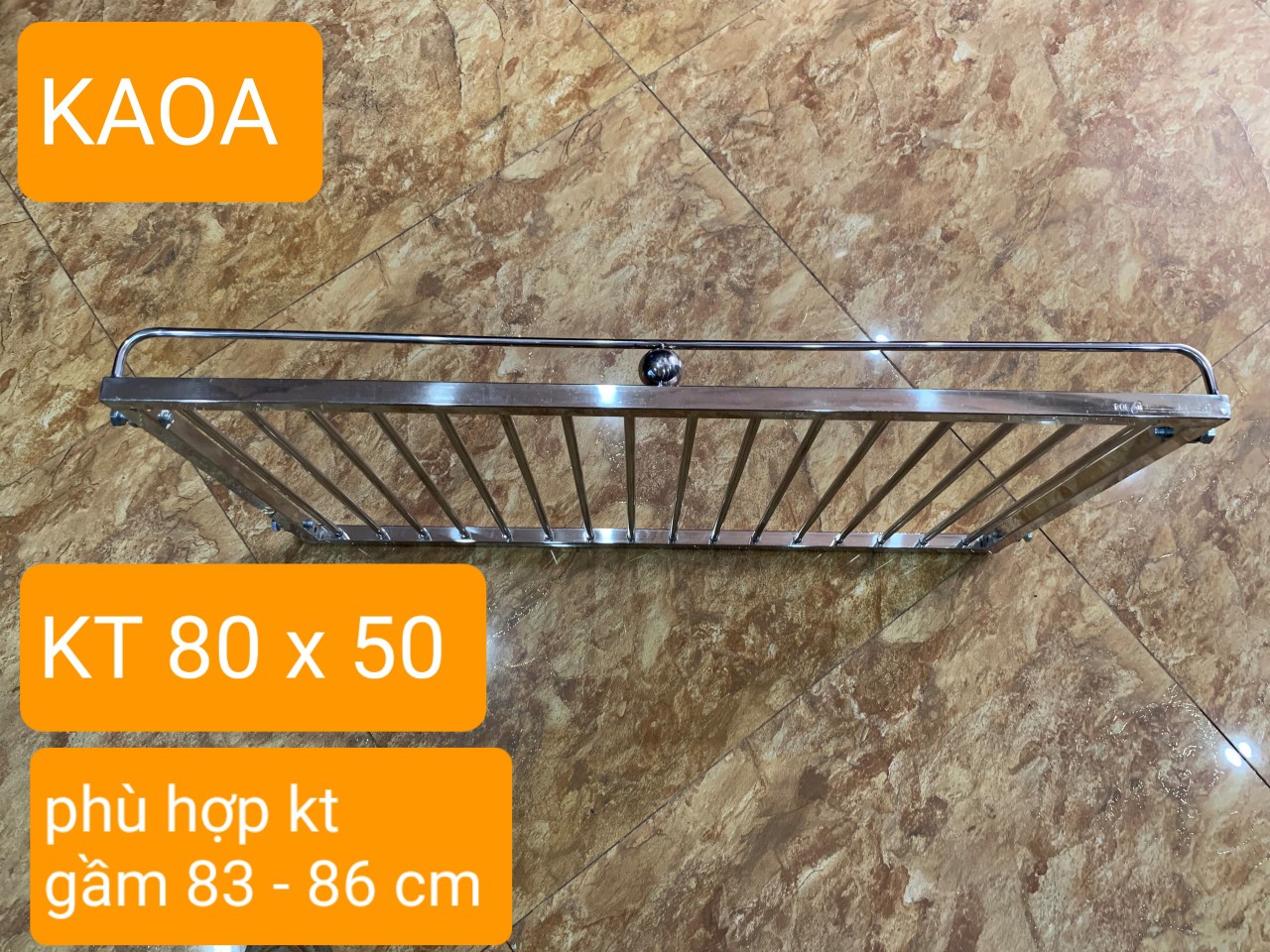 - / kích thước giá. rộng x sâu . 80 x 50 cm ( không tính bulong) 3./ sp được thiết kế thông minh với 4 bulong 2 bên rễ dàng tăng chỉnh linh hoạt theo kích thước dao động cho phép 4./ công năng . sử dụng chủ yếu xoong nồi . bát đĩa . rổ giá các vận dụng nhà bếp vv 5./ khoảng cách nan phi 4 cm LƯU Ý BẮT BUỘC.... kích thước giá 80 cm sẽ phù hợp với kích thước lắp đặt dao động từ 83 - 86 cm ƯU ĐIỂM ́ inox nhà bếp thông minh (KAOA) có thể rễ dàng tháo .lắp linh hoạt mỗi khi vệ sinh không gian phòng bếp cách lắp đặt đơn giản không cần thợ