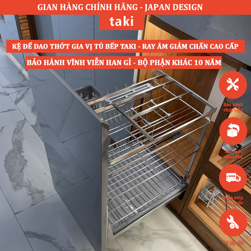 ✪ SẢN PHẨM HÀNG CHÍNH HÃNG - CÓ ĐẦY ĐỦ GIẤY TỜ KIỂM ĐỊNH CHẤT LƯỢNG INOX KHÔNG GỈ 304 - KỆ DAO THỚT RAY ÂM GIẢM CHẤN TAKI INOX KHÔNG GỈ 304