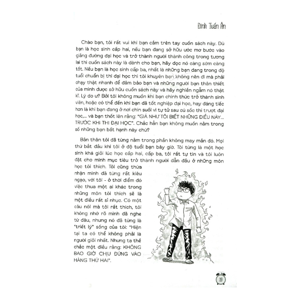 "Chào bạn, tôi rất vui khi bạn cầm trên tay cuốn sách này. Dù bạn là học sinh cấp hai, nếu bạn có ước mơ học tiếp lên đại học trong tương lai để trở thành những người thành công thì tôi khuyên bạn ngày lúc này hãy sở hữu cho mình cuốn sách này càng sớm càng tốt. Nếu bạn là sinh cấp ba, nhất là những bạn đang trong độ tuổi chuẩn bị thi đại học thì tôi khuyên bạn không nên đi mà phải chạy thật nhanh để đảm bảo bạn và những người bạn thân thiết của bạn sở hữu cuốn sách này và nghiền ngẫm nó thật kỹ. Lý do ư? Bởi tôi không muốn khi bạn chính thức trở thành sinh viên, hoặc có thể đến khi bạn tốt nghiệp đại học, hoặc khi bạn đang ở nơi chín suối vì tự tử sau khi trượt đại học,à bạn thốt lên rằng: "Giá Như Tôi Biết Những Điều Nàước Khi Thi Đại Học!"