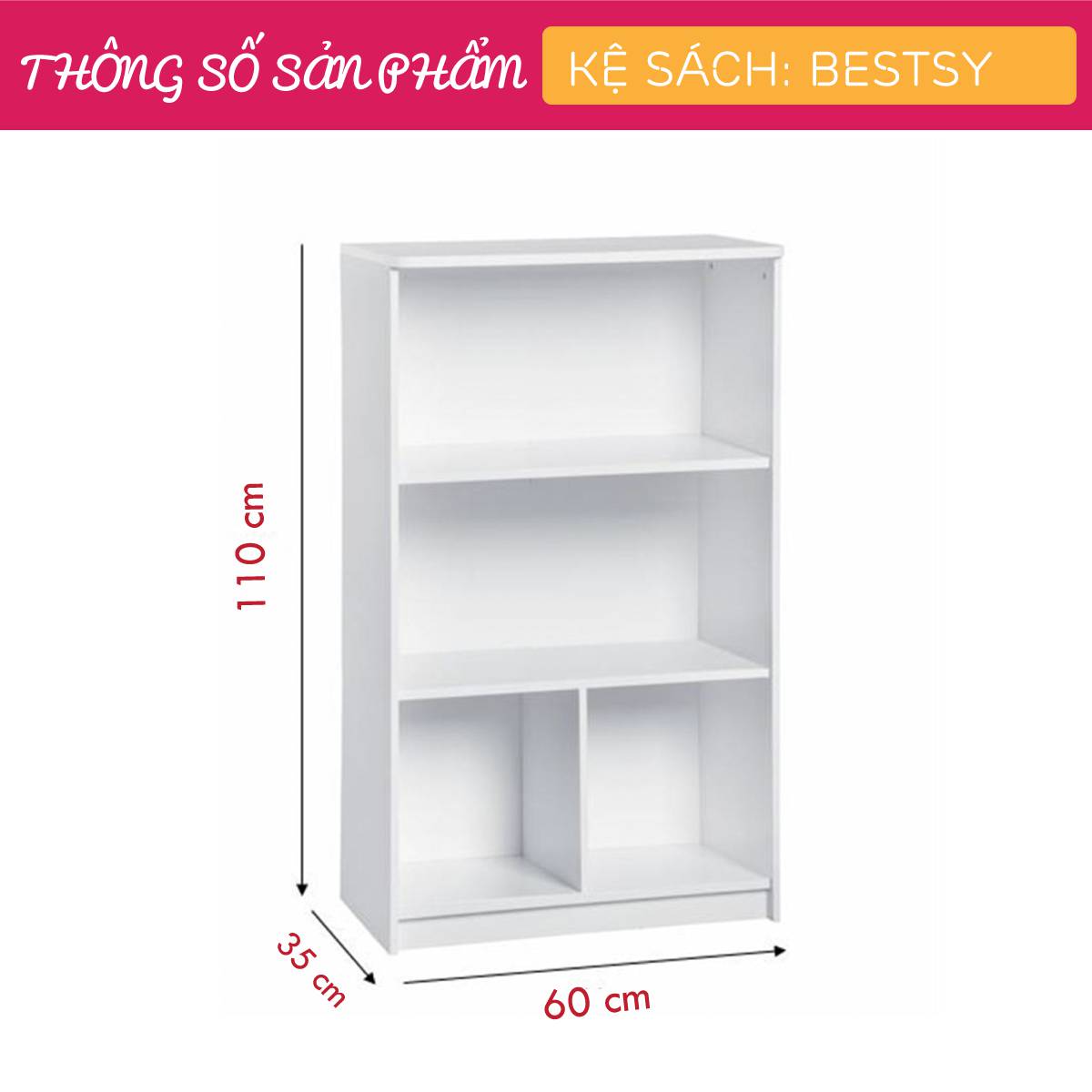 Mua tại TiktokKệ sách gỗ hiện đại SMLIFE Bestsy là kệ sách góc được thiết kế với phong cách đơn giản giúp bạn tận dụng các khu vực góc chết của căn nhà để sắp sếp những cuốn sách một cách sành điệu và độc đáo. Kệ sách Bestsy mang đến sự tinh tế, hiện đại cho phòng khách của bạn và đồng thời cung cấp một không gian lớn cho các vật dụng trang trí. Sản phẩm phù hợp cho mọi phong cách trang trí căn hộ và văn phòng làm việc. Sử dụng vật liệu ván ép công nghiệp MDF chống ẩm phủ Melamine cao cấp giúp kệ sách SMLIFE có độ bền cao, chống trầy và chống ẩm rất tốt. Bạn có thể tự lắp đặt sản phẩm dễ dàng với các phụ kiện và hướng dẫn đi kèm .